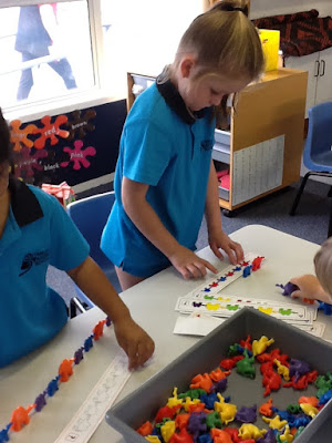 We have been working with Room 5 during maths time. Miss Williams and Mrs Trebes take us out in groups while we work on our tumble. Here are some of the activities we do during that time.